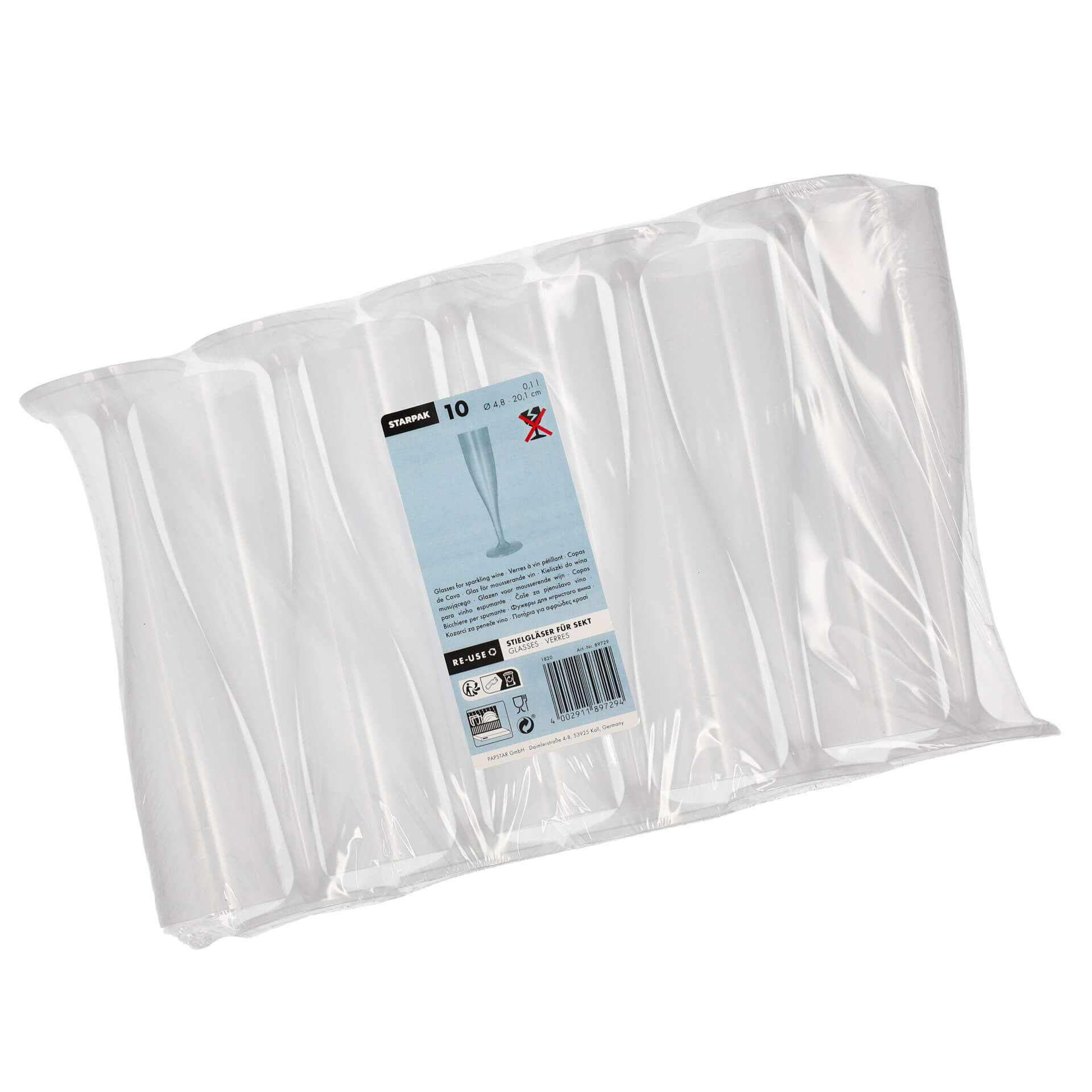 Reusable plastic champagne glass, polypropylene - 0.1 L (10-pack)