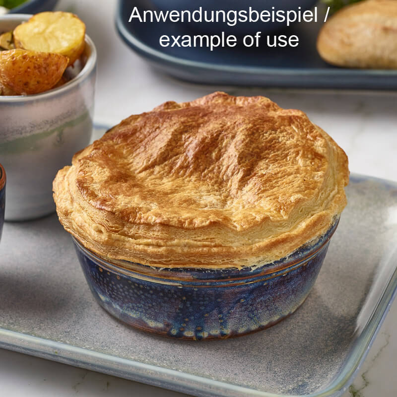The Terra Aqua Blue round cake pan combines functionality and aesthetics at the highest level. Its reactive blue effect glaze creates natural color gradients and subtle shades when fired at high temperatures – making each piece unique. Ideal for desserts, mini tarts, or casseroles in a stylish presentation. The fully vitrified porcelain impresses with its high density, stability, and durability. Manufactured in accordance with the British BS4034 standard, which guarantees tested quality for vitrified hotel tableware and resistance to water absorption.