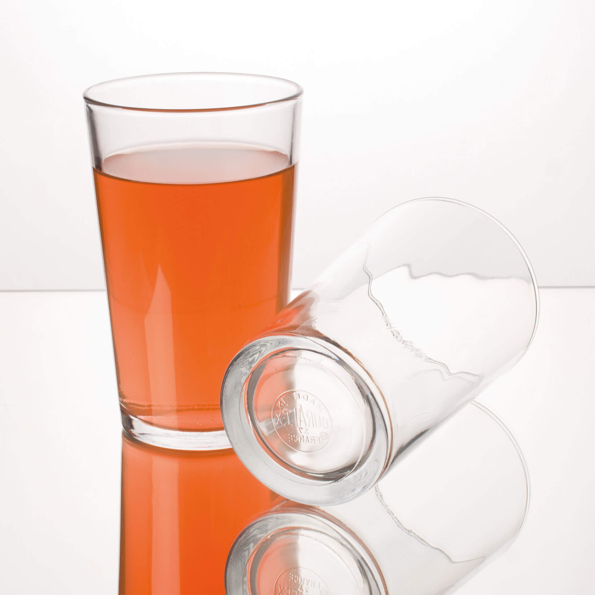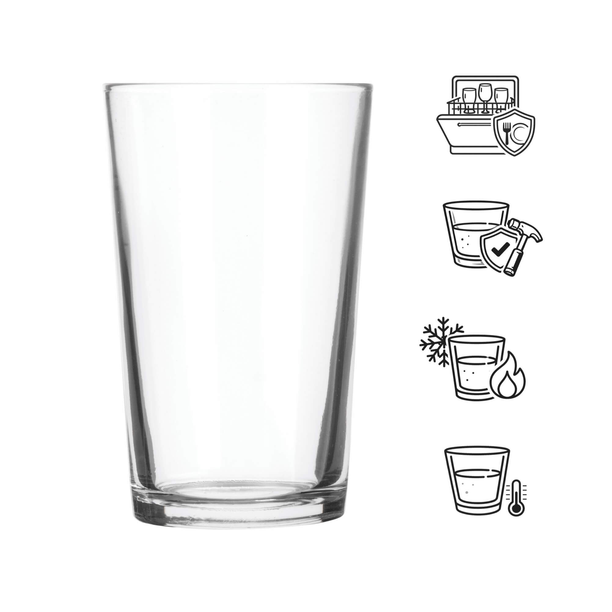 This classical and neutral juice glass is part of the 'Chope Unie' series made by Duralex and has a capacity of 280ml. Moreover, the glass has a thickened base which guarantees stability and a firm standing. Use these drinking glasses to serve water, juice, iced teas, longdrinks or lemonades.