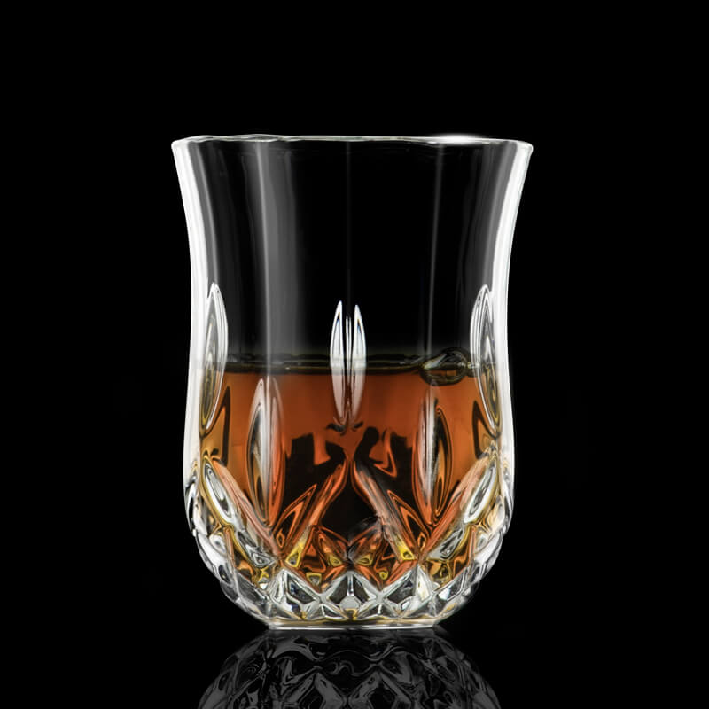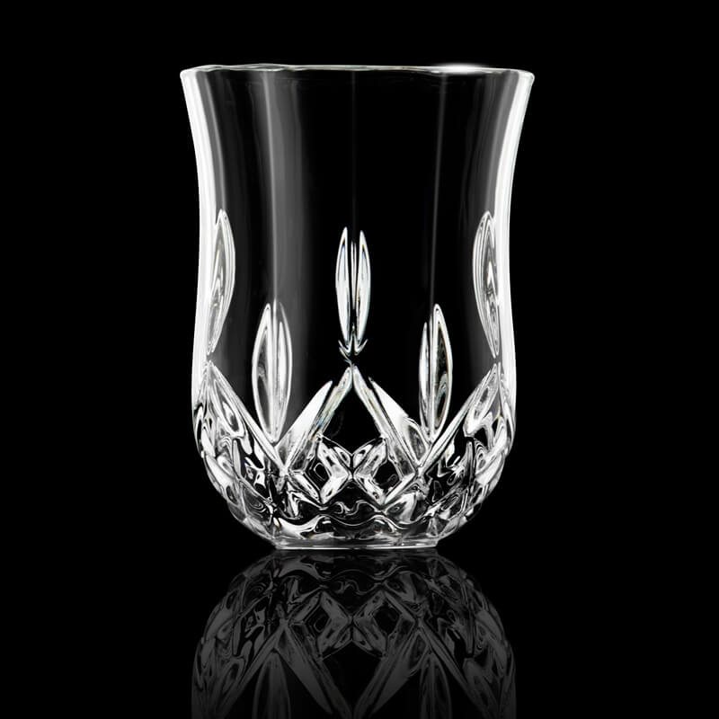 The design of RCR's 'Opera' series is classic and timeless and features a pattern of diamonds and drops. This small shot glass with a height of 6,3cm and a diameter of 4,8cm is particularly handy, not least due to its relief structure on the outside. The rim of the small spirits glass is dodecagonal and offers a surprising effect when taking the first sip. If you look into the stamper from above, the diamond pattern appears like a flower, which can be seen best when the glass is empty. With a capacity of 60ml, the 'Opera' shot glass is suitable for all kinds of spirits and liqueurs.
