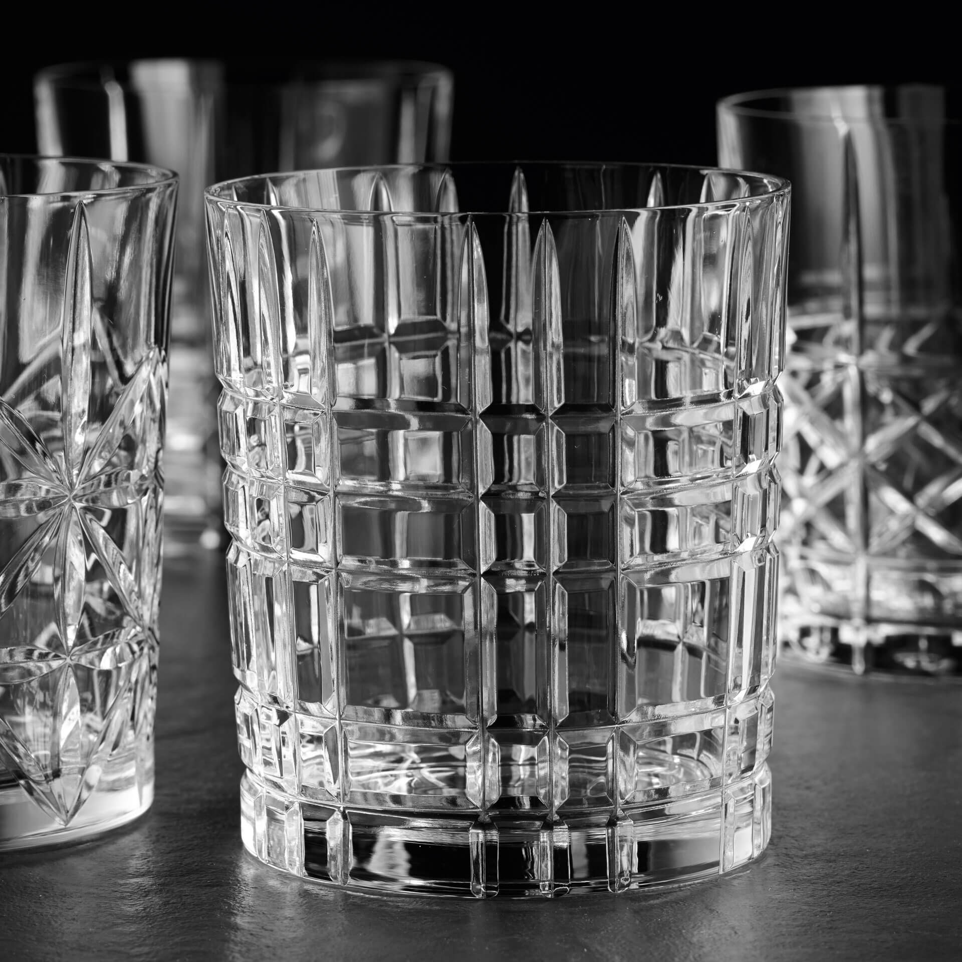 The Highland series by Nachtmann consists of whiskey tumbler with four different patterns. Choose the for you most appealing and matching design or combine a few of this harmonized patterns and enrich your bar, restaurant and tables! All glasses have a capacity of 345ml, a height of 10,2cm and are made of crystal glass.