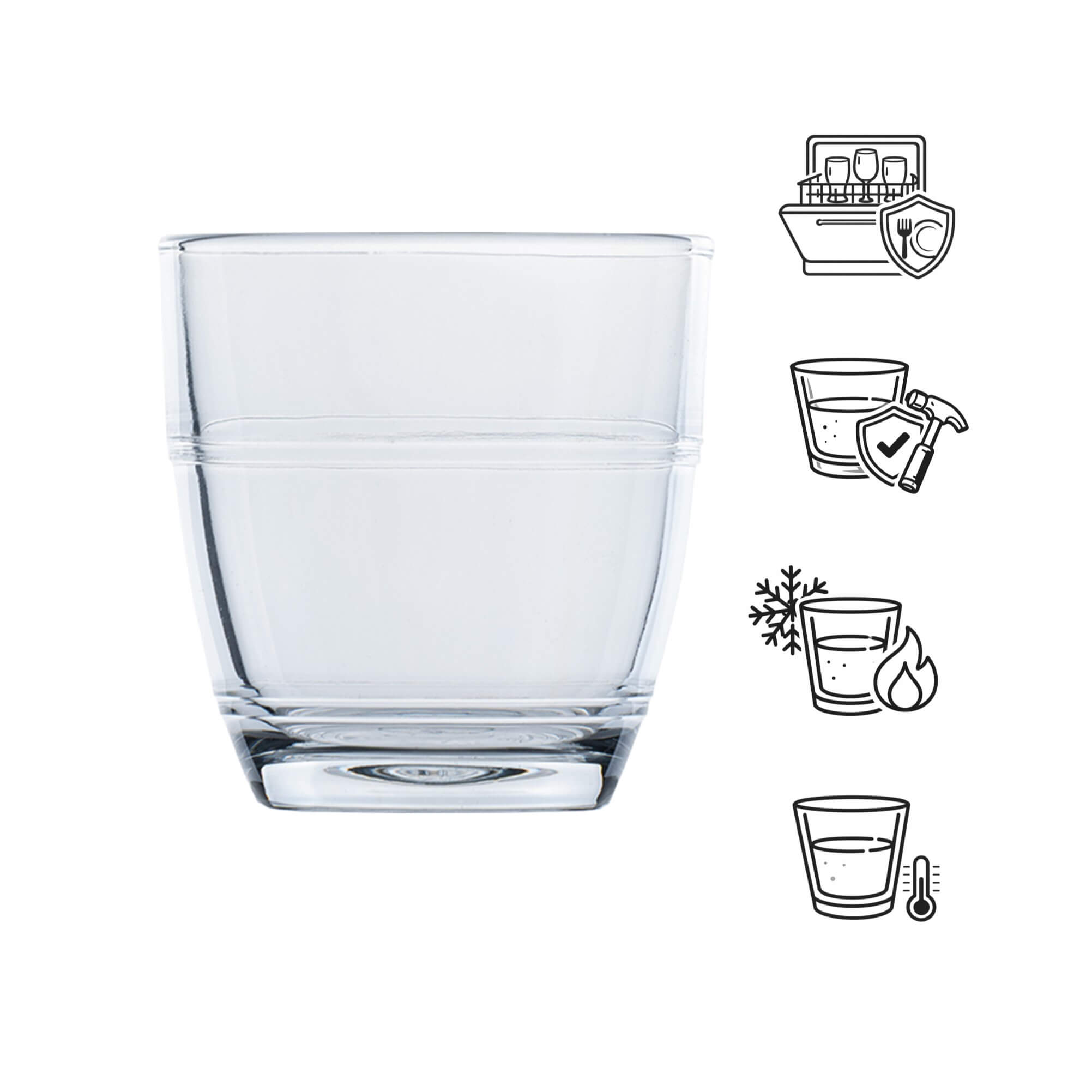 This small stacking tumbler from the Gigogne series is the perfect choice for anyone who values durability and classic design. The 90ml drinking glass is made of tempered glass and comes from the renowned French manufacturer Duralex, which has been synonymous with quality and suitability for everyday use for decades. The stackable design saves space and makes the cup particularly popular in communal catering, cafés, canteens and bars.