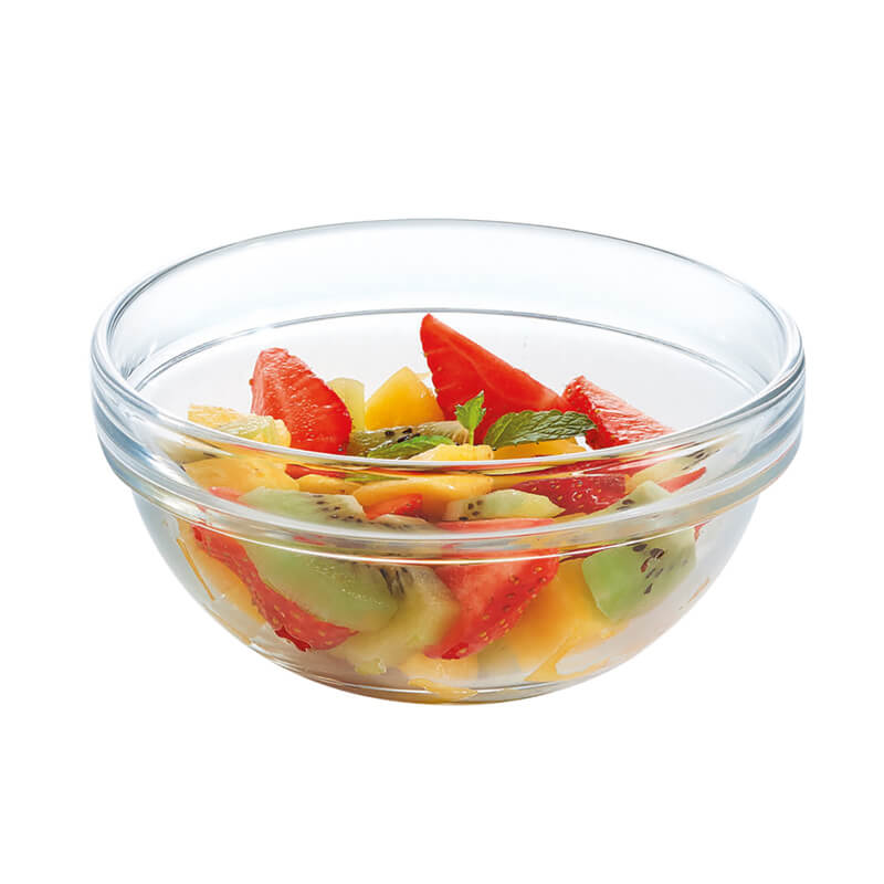 Stack these robust glass bowls to save space at the buffet for self-service or use them to serve snacks and dips.