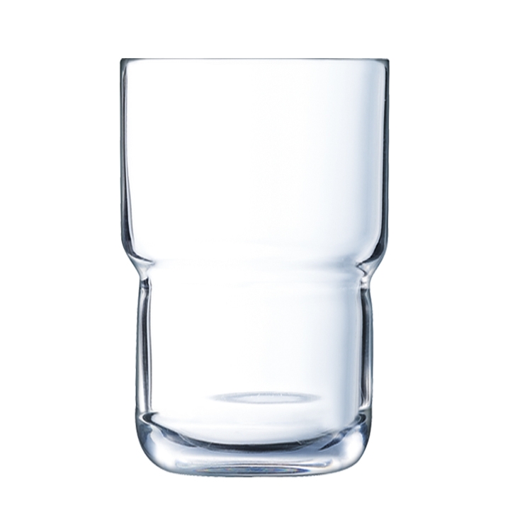 The biggest of Arcoroc's stackable Log tumblers has a 320ml capacity and is therefore ideally suited as a soft drink, water or juice glass for buffets and receptions. While the stackable design can probably best play off its advantages on a bigger scale, it is just as practical and space-saving in any home environment.