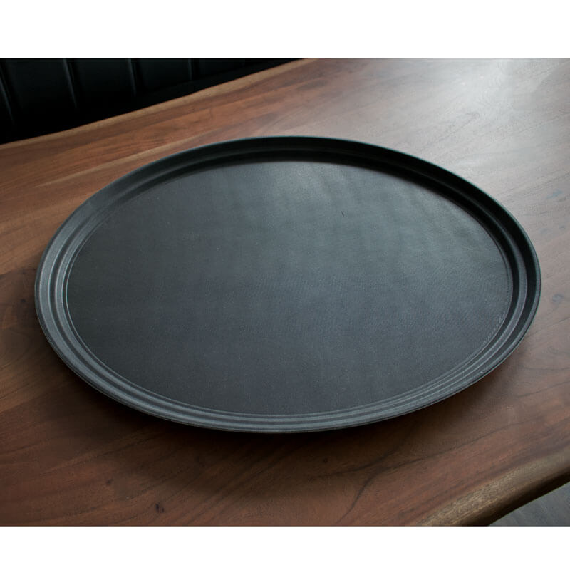 This large serving tray is made of black fiberglass with a non-slip top. The black tray is oval and measures up to 73,5cm on the long side and a maximum of 60cm on the narrow side, making the anti-slip tray particularly large and suitable for beer gardens, large events and anything where large quantities of food and drinks need to be brought to tables and dishes cleared quickly.