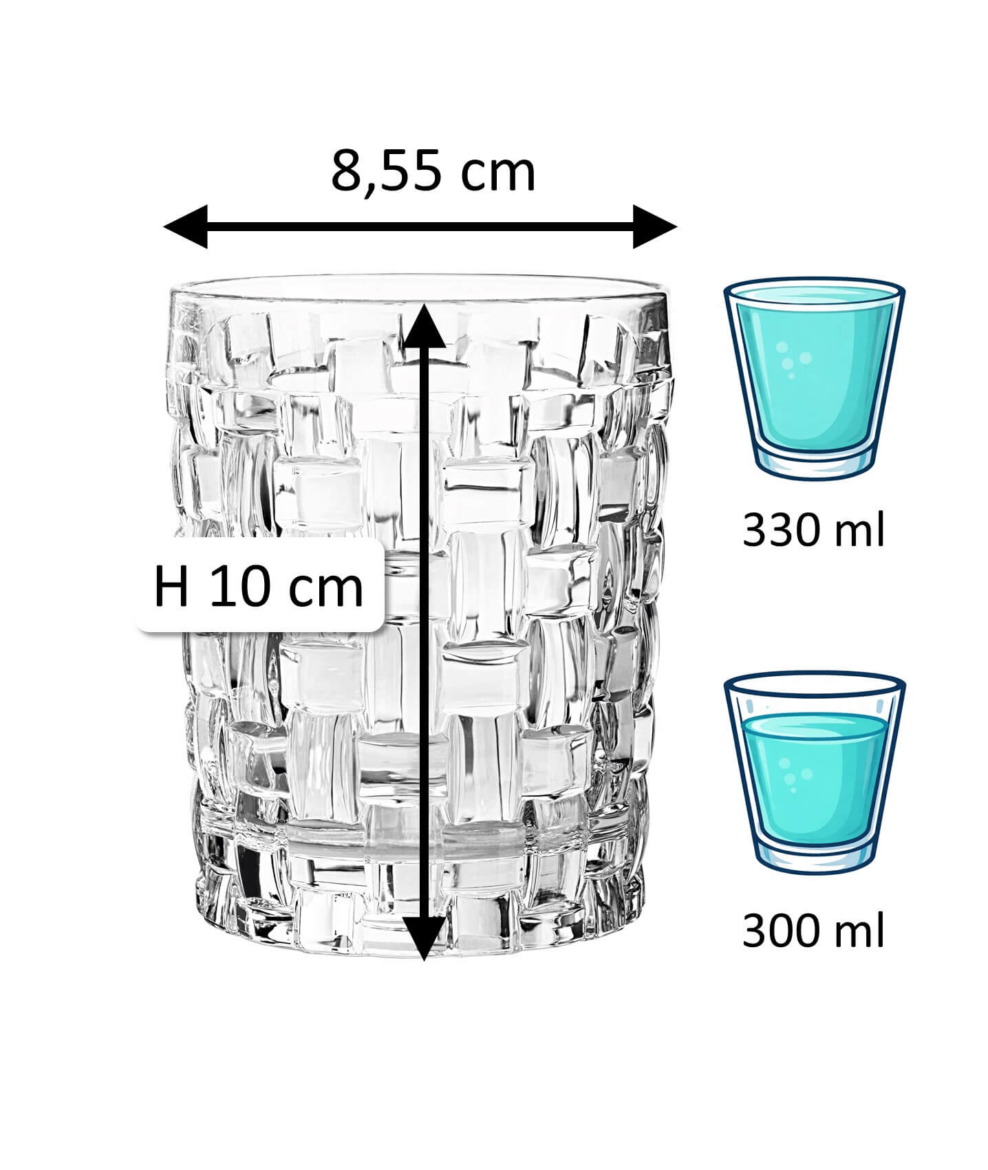 The tumbler glasses will surprise you and your guests with its conventional shape and high contrast design. They are perfect for longdrinks, classic cocktails and whisky.