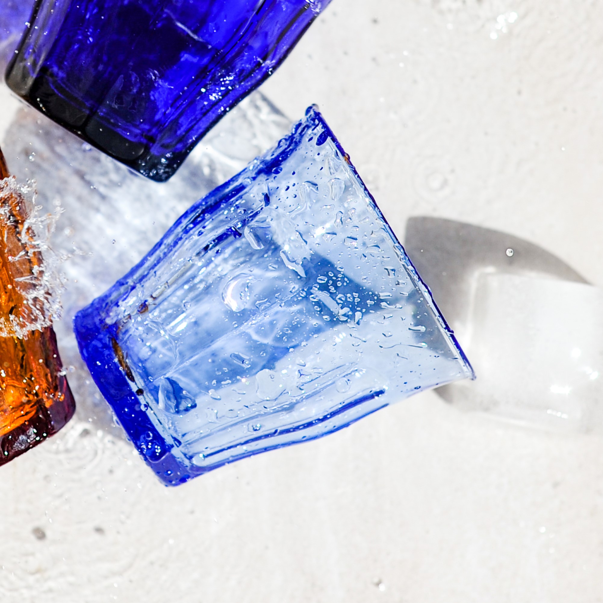 Serve water, soft drinks or juices in this blue tumbler. The blue color of the glass gives mineral water in particular a visual freshness effect.