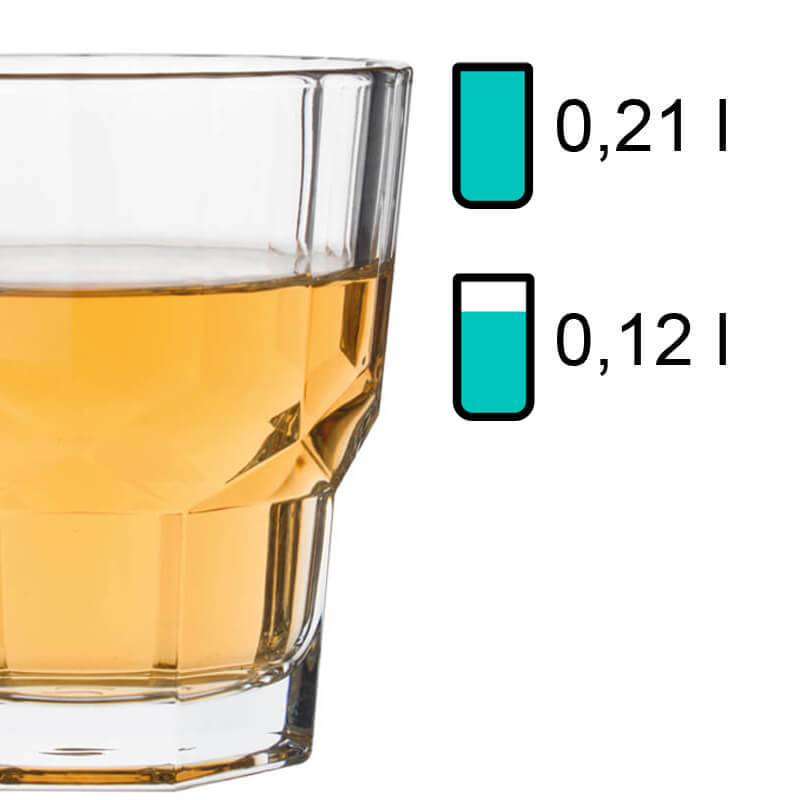 1Note: The specified 'total volume' (also referred to as gross capacity) of a glass indicates the maximum amount of liquid it can hold when filled to the brim. In contrast, the 'fill volume' (also referred to as usable volume or serving volume) describes the practically usable amount. Both values are given in ml or l. Due to production conditions, a tolerance of ±5% may occur, which corresponds to industry standards and does not constitute a defect.
