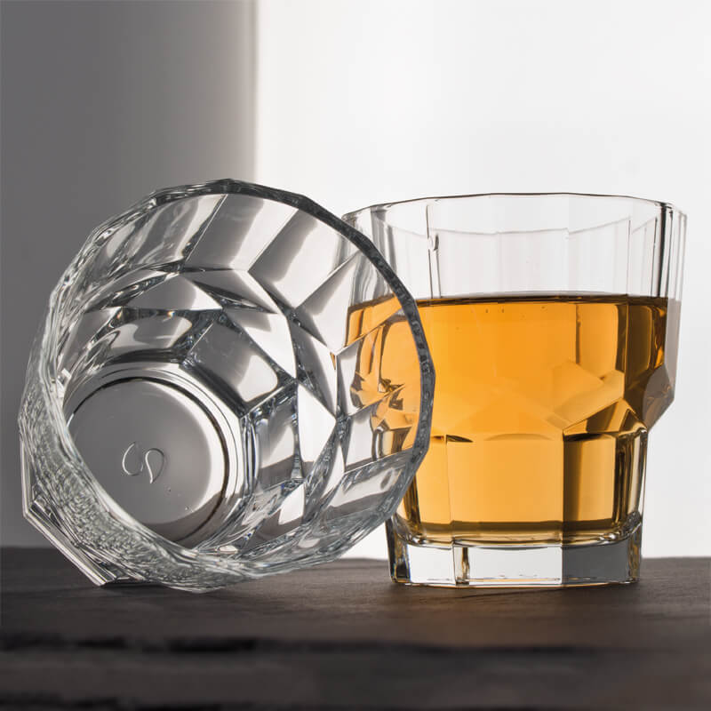 Tumblers are among the most versatile glasses at the bar and beyond. However, the Serenity tumbler by Pasabahce one-ups them all by also combining different patterns: the top and bottom of the glass have different numbers of corners while a band of rhomb-shaped patterns runs all around the middle part of the glass.