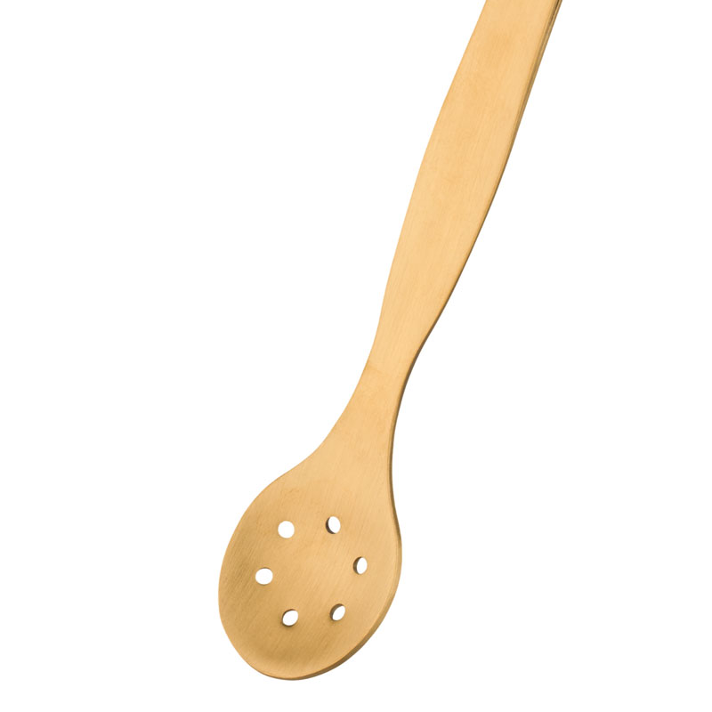 This gold-colored bar tool adds a touch of class to your cocktail preparation and is also extremely practical. It combines tweezers with a spoon. This means you can switch from one use to the other with a quick twist. Ridges on the inside of the tweezers and on the handle ensure a good grip for your fingers and ingredients. The tweezers with spoon are made of stainless steel, are approx. 27 cm long, and the spoon has holes.