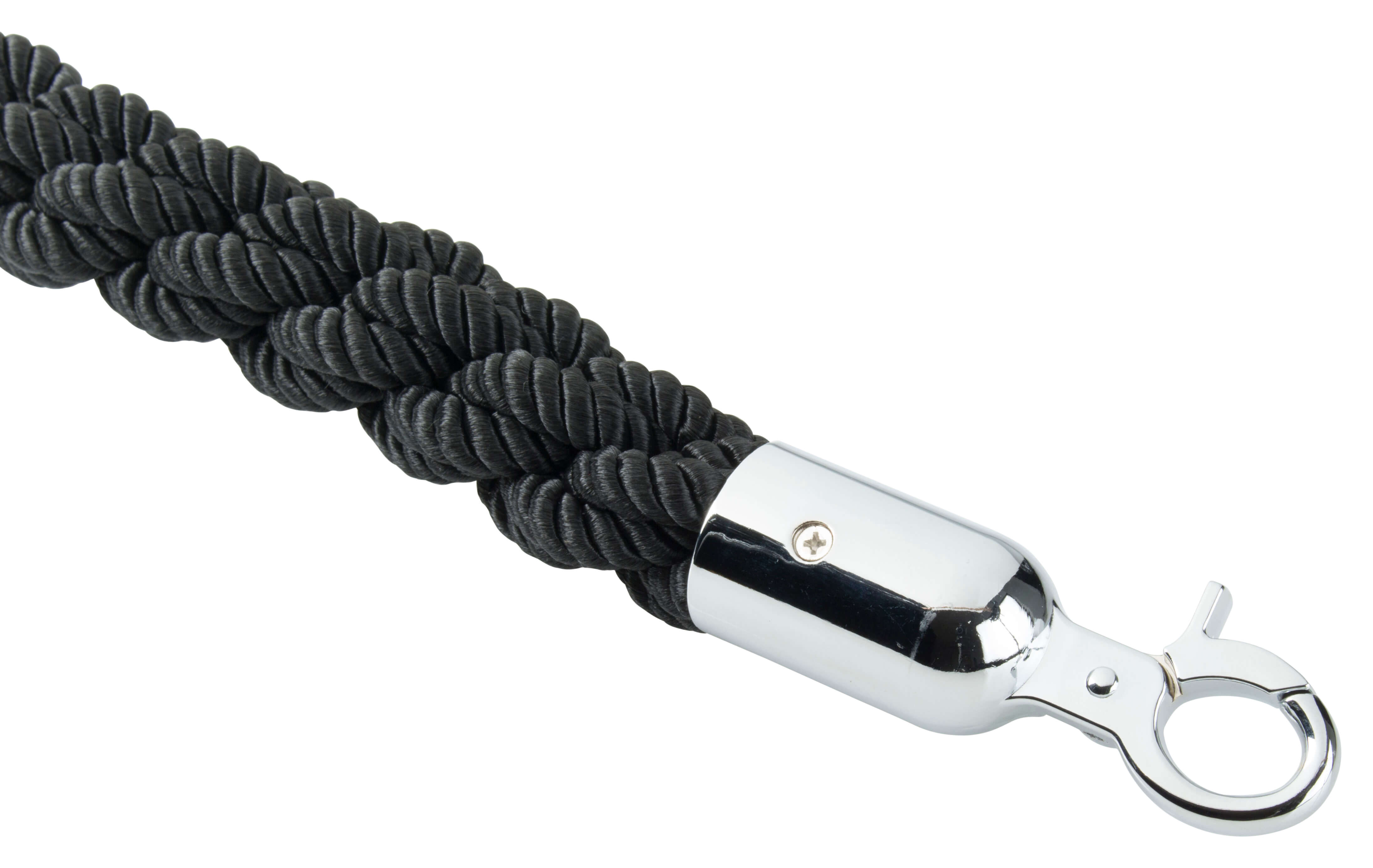 Just span or connect these cords by using the separately available posts and/or wall brackets to block passages, form queues or rope in bigger waiting areas. This is the black variant with head pieces made of chrome.