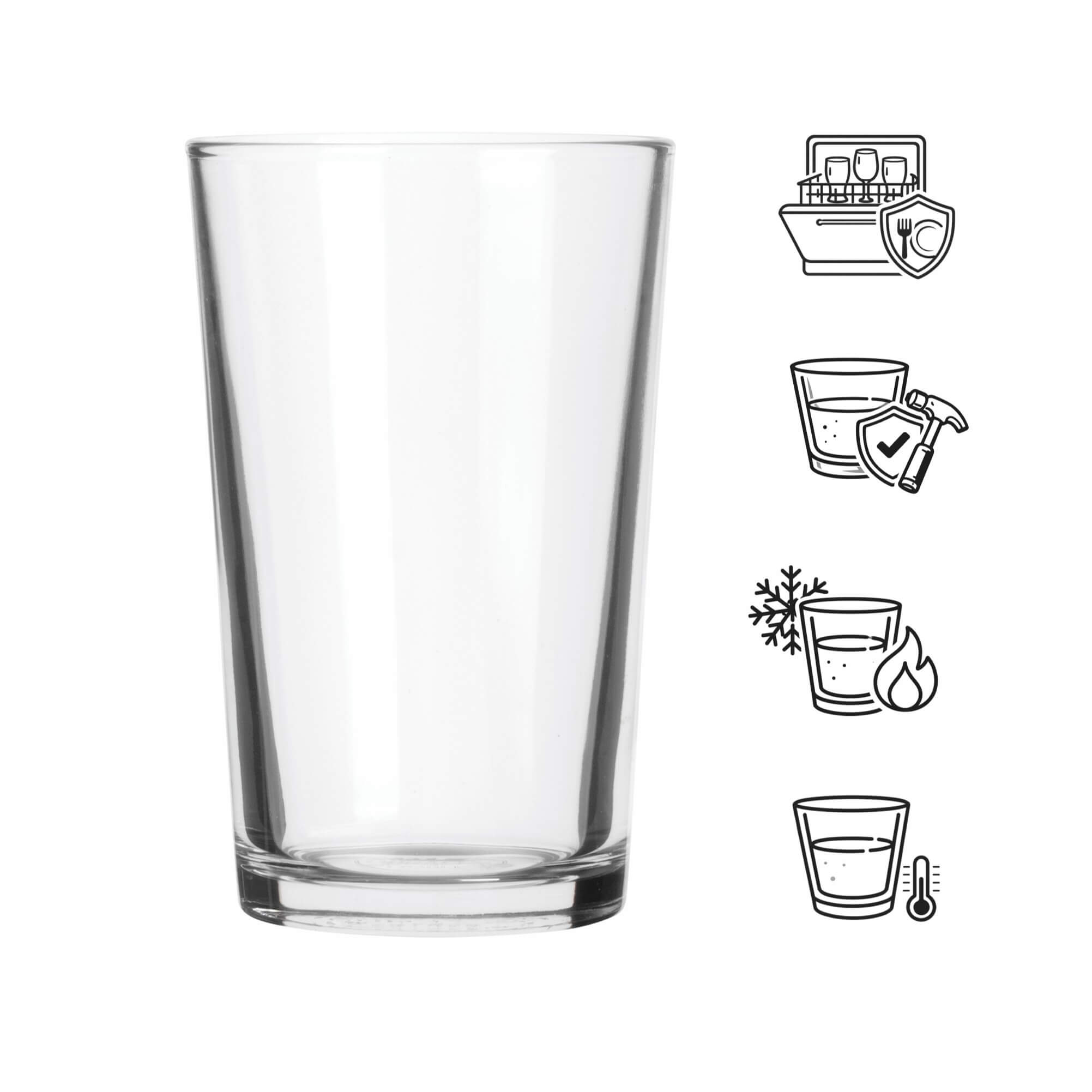 The water glass from the 'Chope Unie' series by Duralex has a volume of 200ml and a shape that widens towards the top. The sturdy walls and slightly thickened base provide the necessary robustness and stability for everyday use. Thanks to the classic, simple shape, the water glasses go well with a variety of furnishings and tableware.