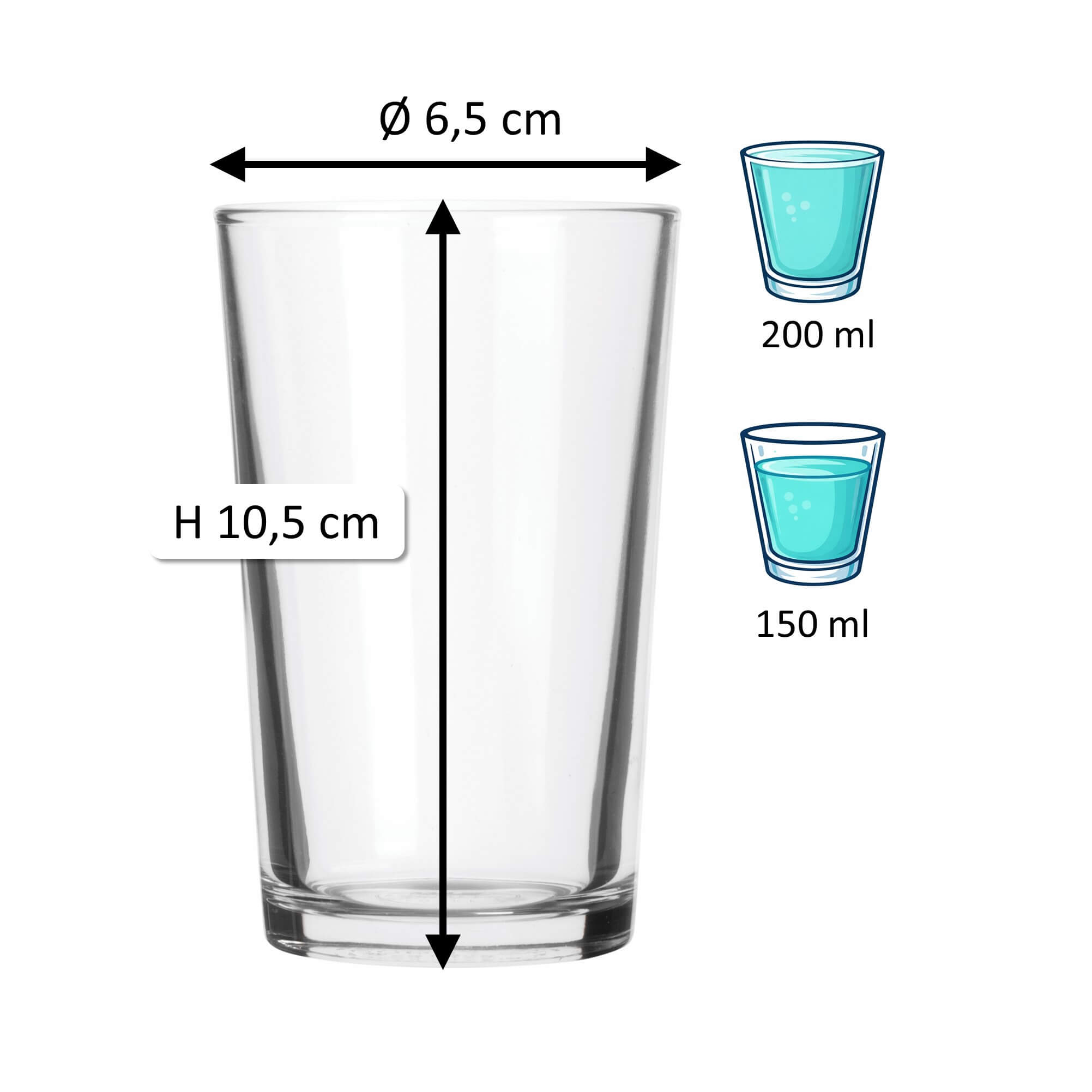 1Note: The specified 'total volume' (also referred to as gross capacity) of a glass indicates the maximum amount of liquid it can hold when filled to the brim. In contrast, the 'fill volume' (also referred to as usable volume or serving volume) describes the practically usable amount. Both values are given in ml or l. Due to production conditions, a tolerance of ±5% may occur, which corresponds to industry standards and does not constitute a defect.