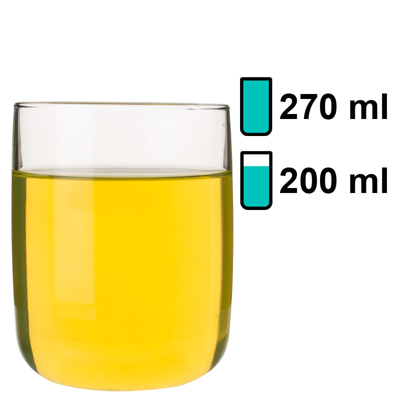 1Note: The specified 'total volume' (also referred to as gross capacity) of a glass indicates the maximum amount of liquid it can hold when filled to the brim. In contrast, the 'fill volume' (also referred to as usable volume or serving volume) describes the practically usable amount. Both values are given in ml or l. Due to production conditions, a tolerance of ±5% may occur, which corresponds to industry standards and does not constitute a defect.