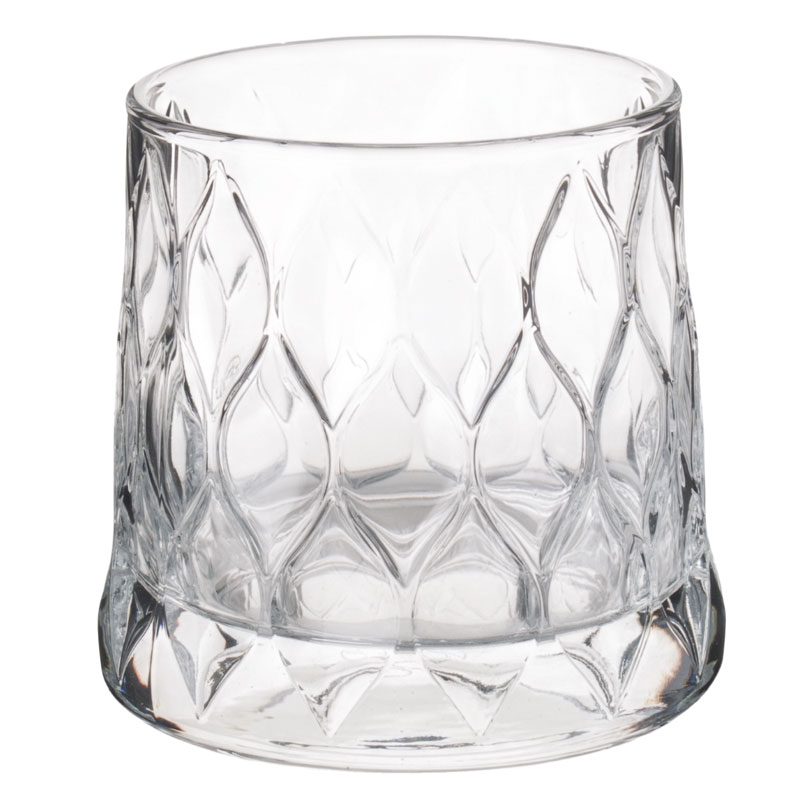This elegant whisky tumbler by Pasabahce immediately catches the eye with its chic design and the interesting structure of the rhomb-shaped decor – additionally, the glass also has a characteristic, slightly conical shape with only slightly tapered glass walls, which is also immediately memorable.