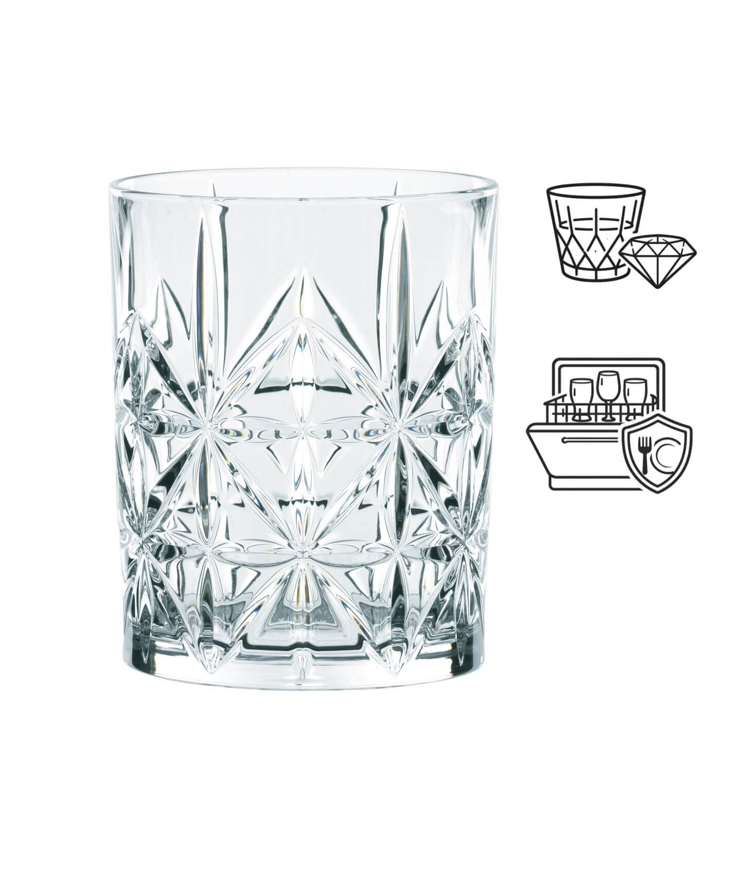 This whiskey tumbler made by Nachtmann out of the Highland series is decorated with a cross shaped cut.