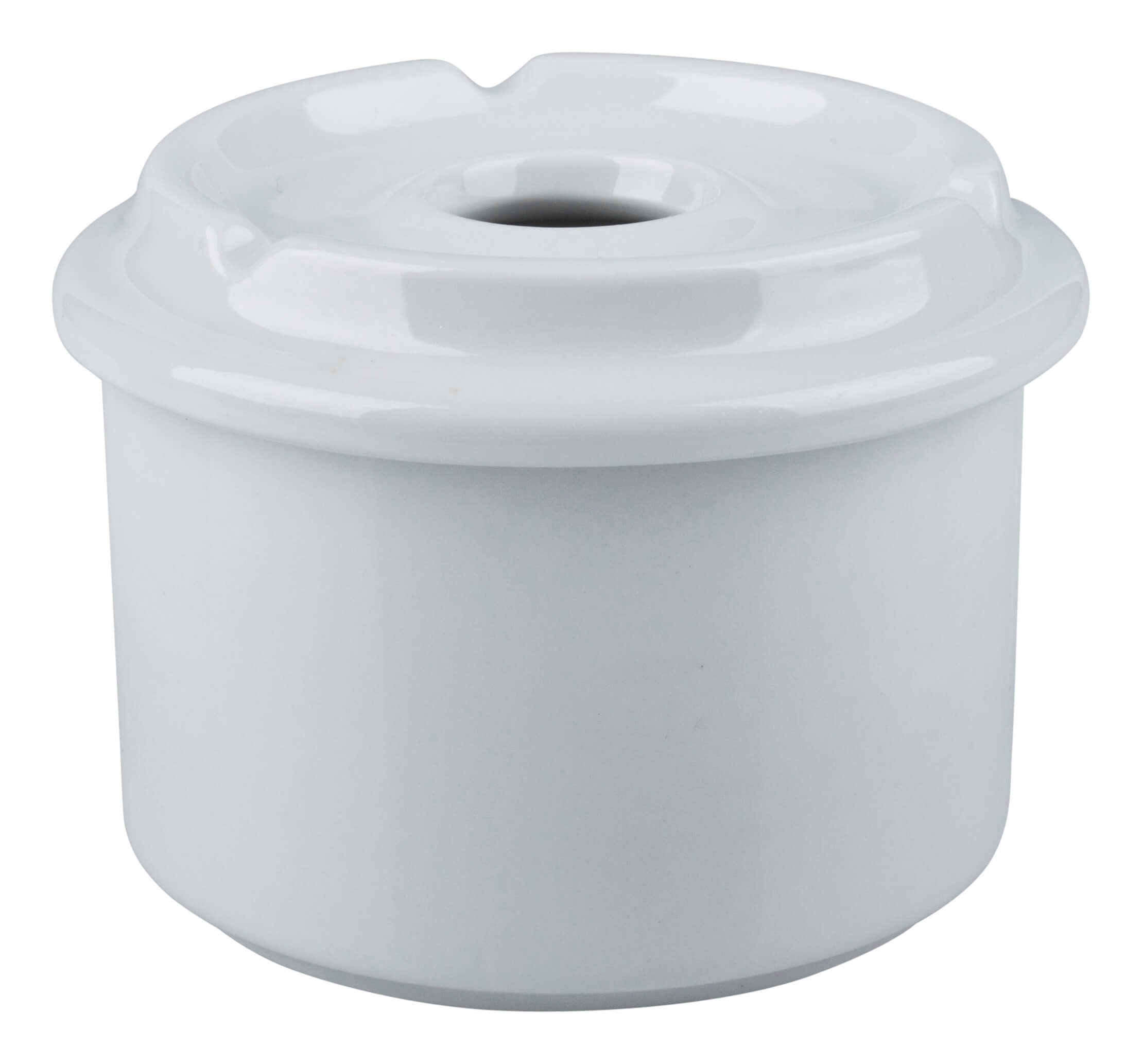 This attractive wind ashtray is made of glazed porcelain in white color. The round ashtray has a lid with a hole for ash and cigarette filters. As a result, the rubbish is prevented from flying around and your terrace, beer garden or smoking area stay a lot cleaner.